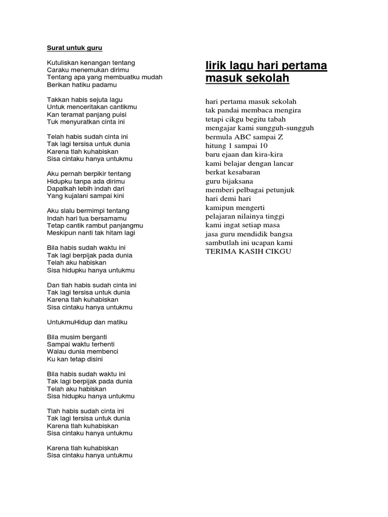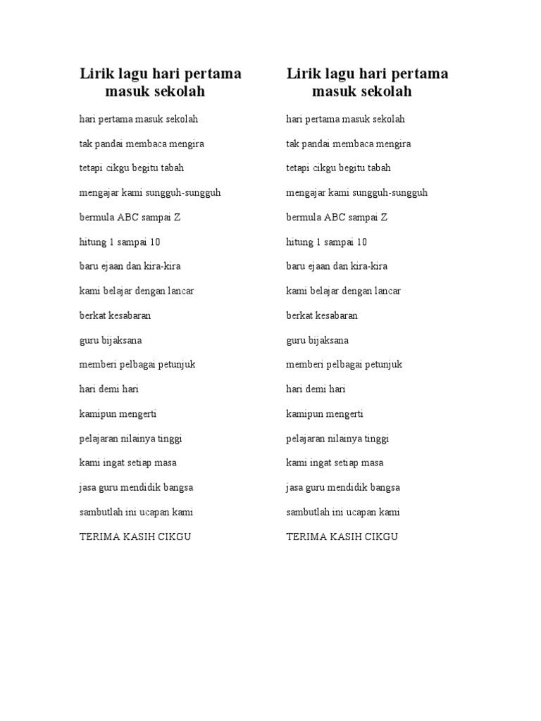 Lirik Lagu Hari Pertama Masuk Pdf